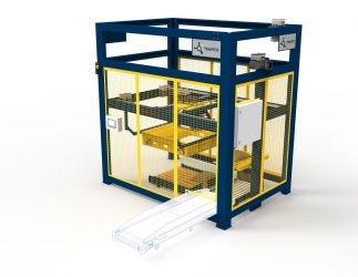| Flexibilní uspořádání vstupu materiálu a odběru palety | |